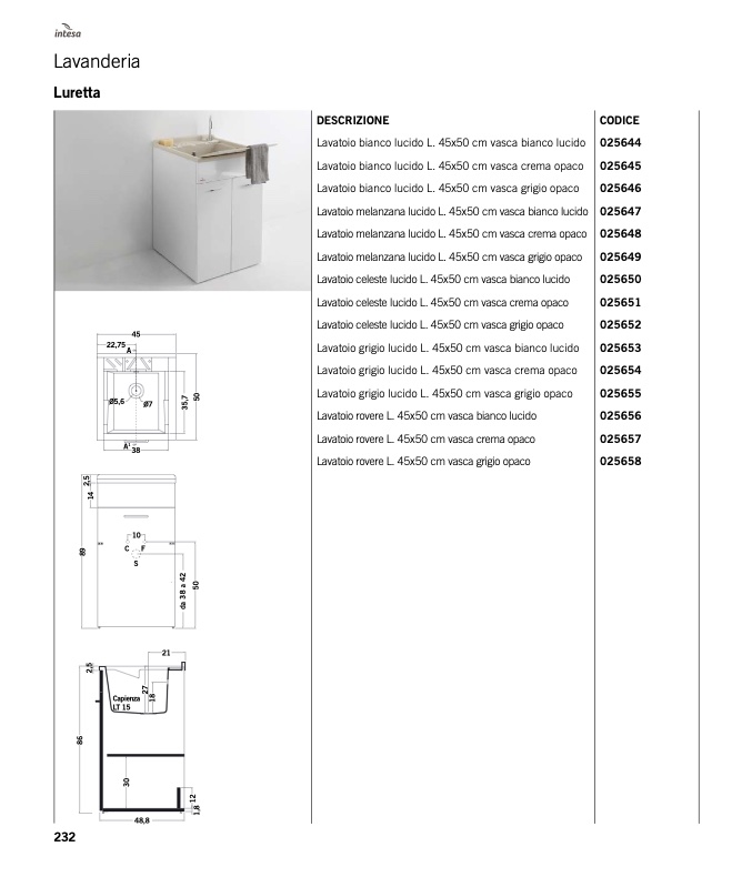 Lavatoio bianco lucido L. 45x50 cm vasca crema opaco