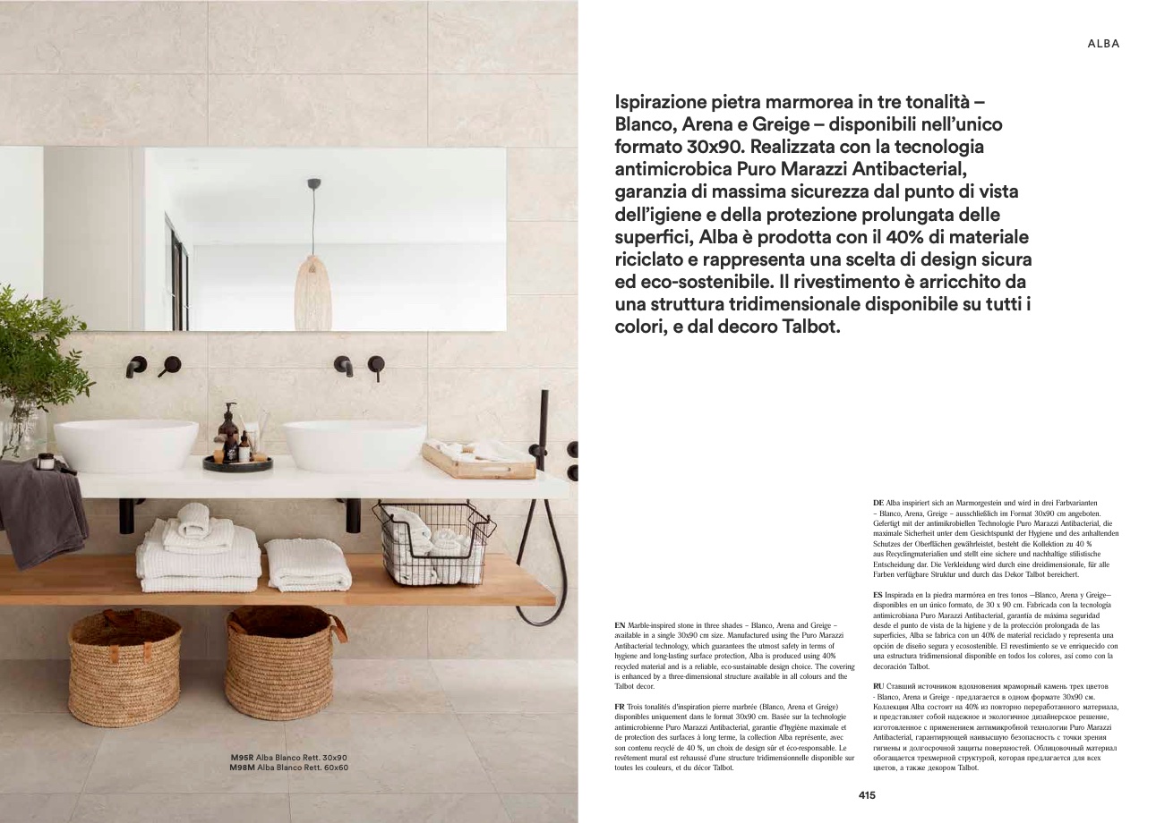 ES Inspirada en la piedra marmórea en tres tonos —Blanco, Arena y Greige—