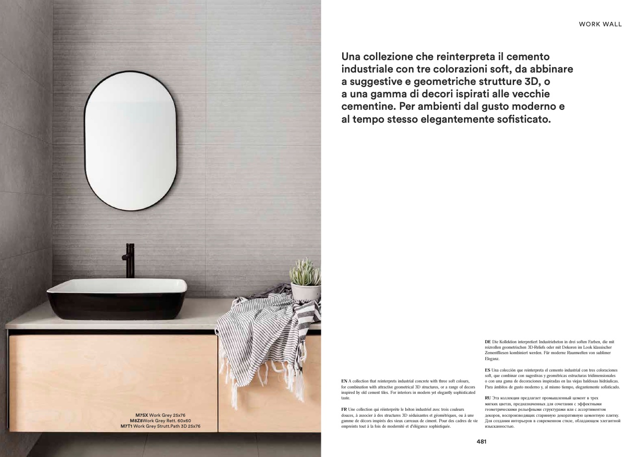 EN A collection that reinterprets industrial concrete with three soft colours,