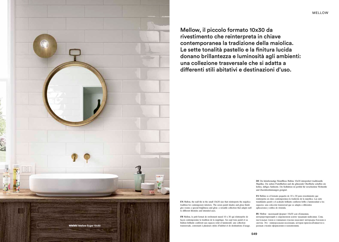 EN Mellow, the wall tile in the small 10x30 size that reinterprets the majolica