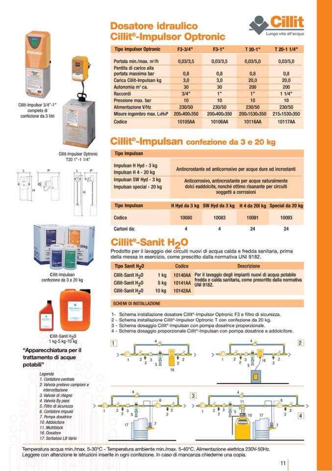 Temperatura acqua min./max. 5-30°C - Temperatura ambiente min./max. 5-40°C. Alimentazione elettrica 230V-50Hz.