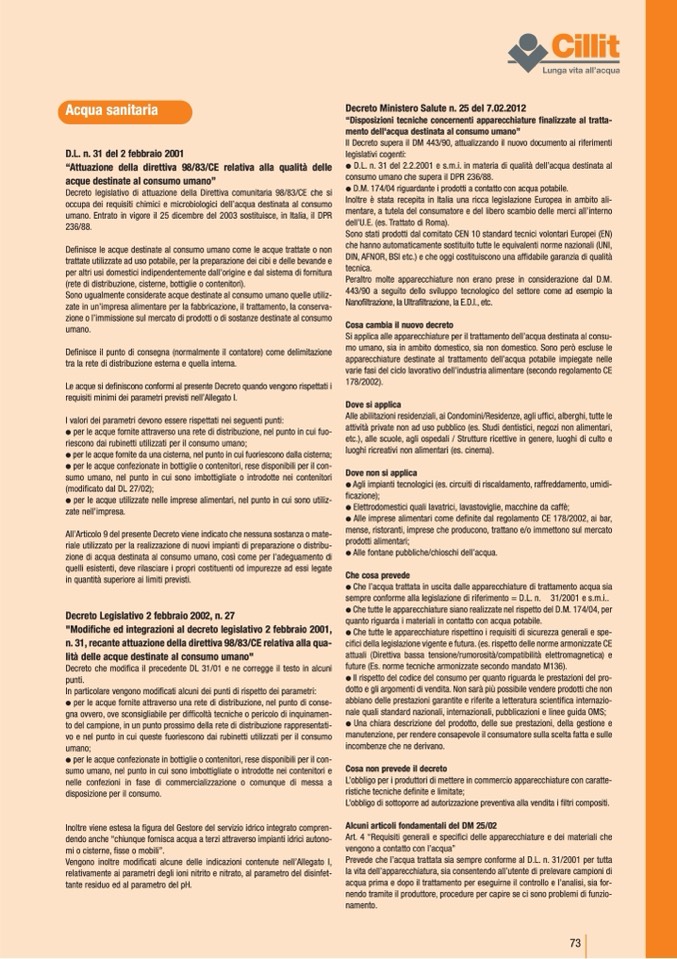 G D.M. 174/04 riguardante i prodotti a contatto con acqua potabile.