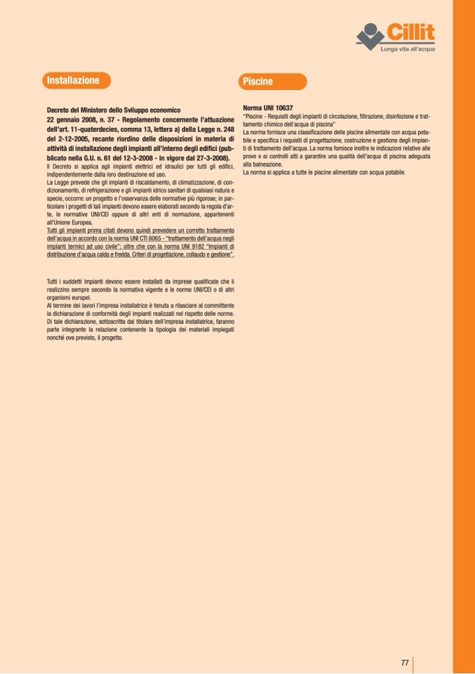 “Piscine - Requisiti degli impianti di circolazione, filtrazione, disinfezione e trat-