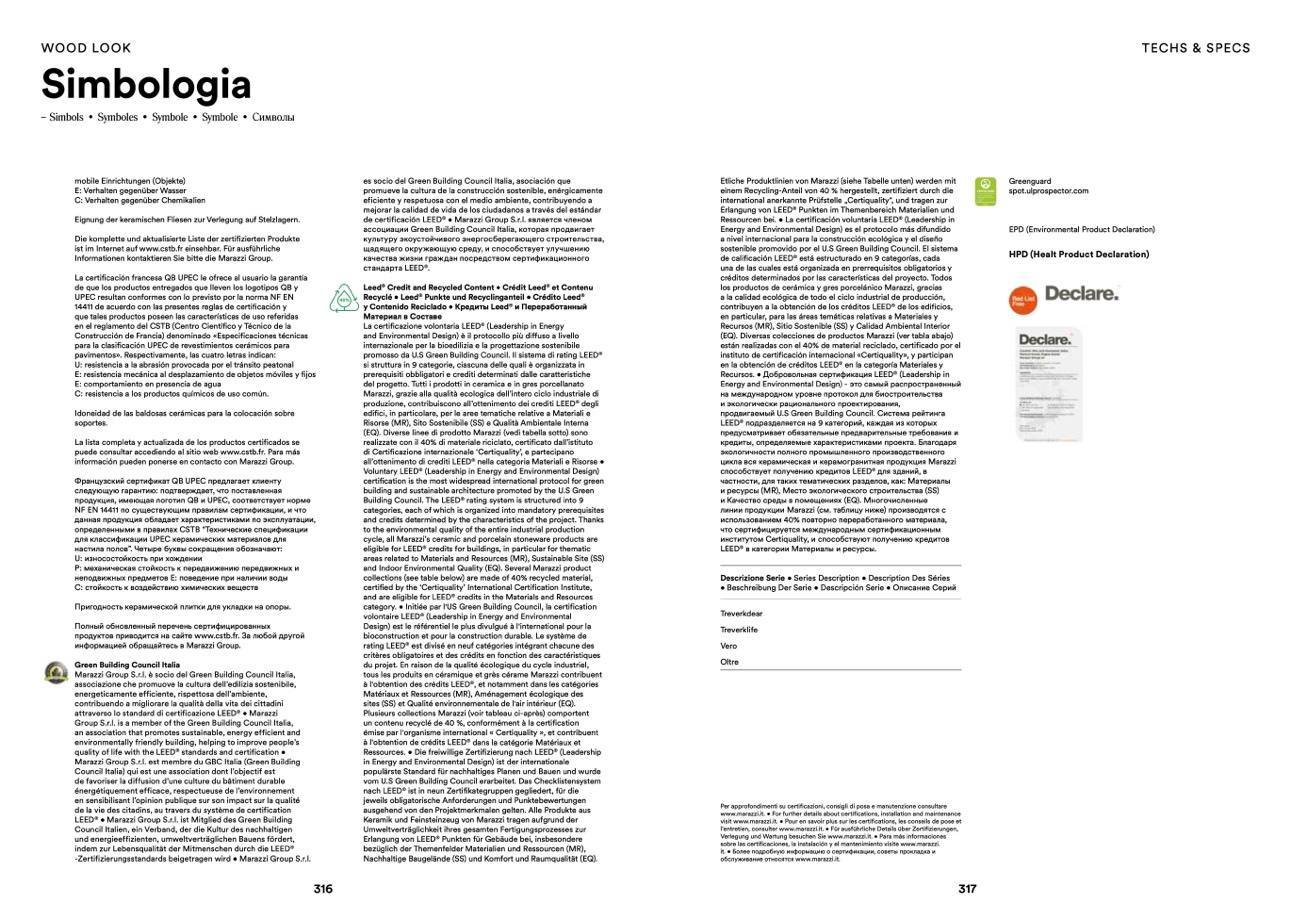 l’entretien, consulter www.marazzi.it. • Für ausführliche Details über Zertifizierungen,