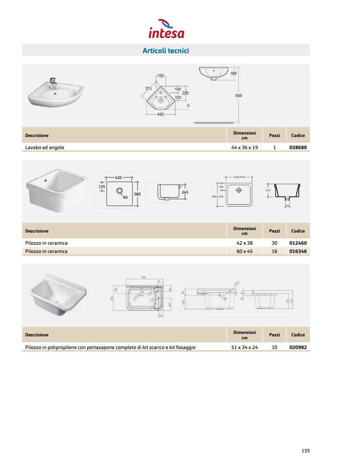 Pilozzo in polipropilene con portasapone completo di kit scarico e kit fissaggio