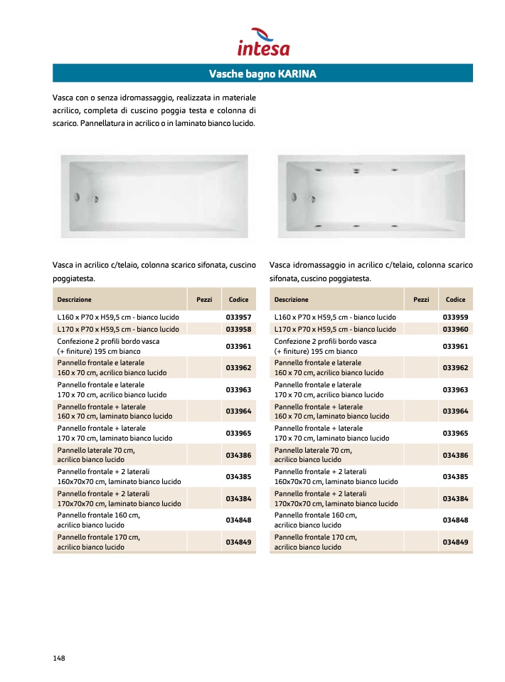 Vasca in acrilico c/telaio, colonna scarico sifonata, cuscino