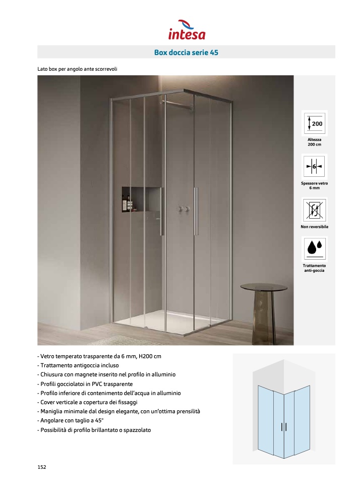- Vetro temperato trasparente da 6 mm, H200 cm