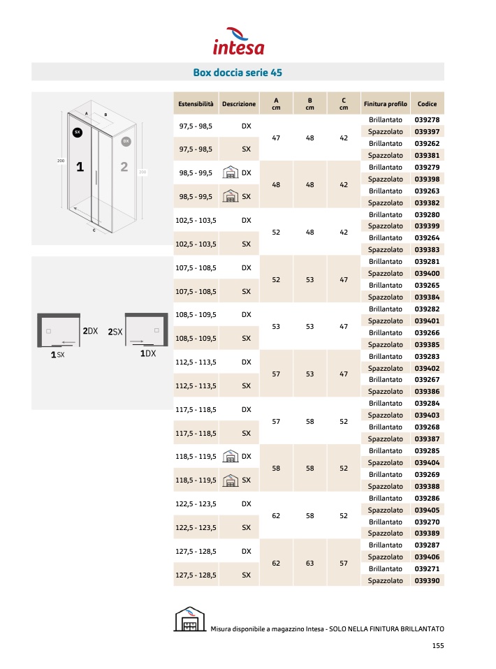 Misura disponibile a magazzino Intesa - SOLO NELLA FINITURA BRILLANTATO