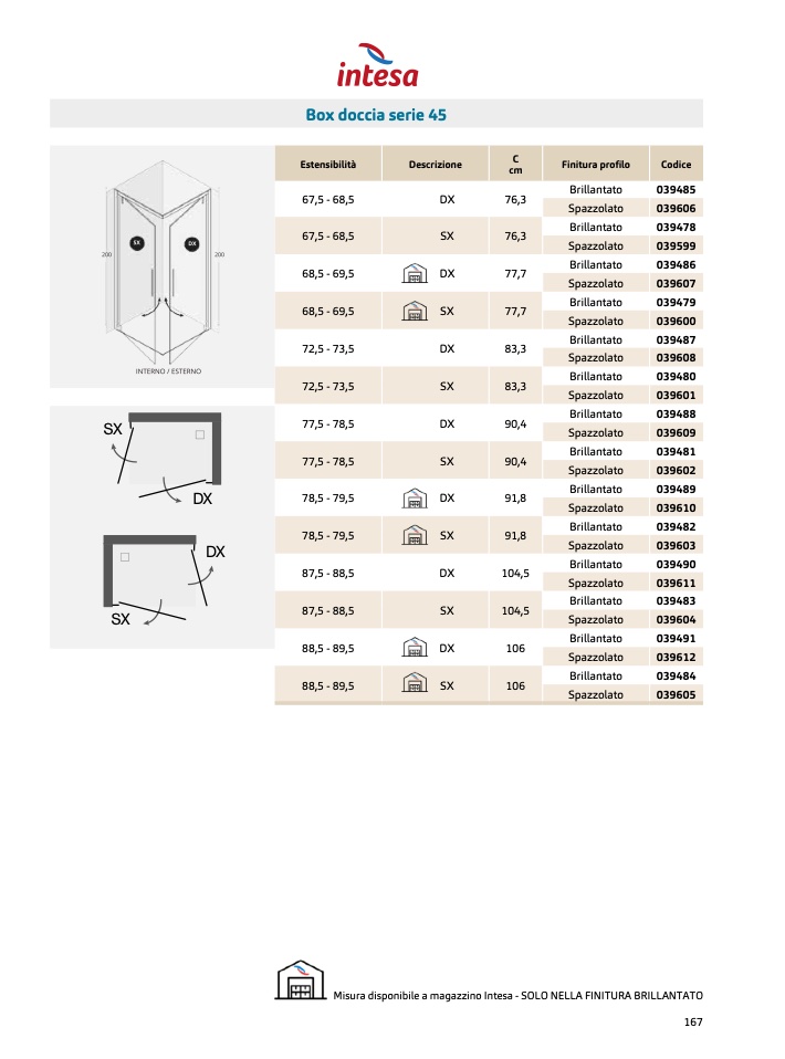 Misura disponibile a magazzino Intesa - SOLO NELLA FINITURA BRILLANTATO