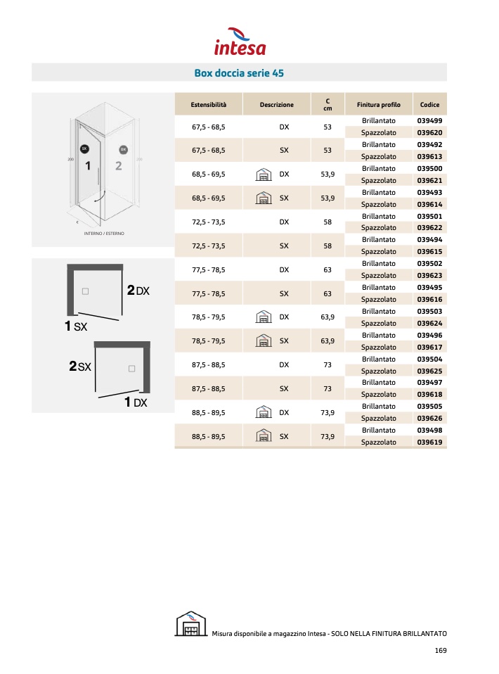 Misura disponibile a magazzino Intesa - SOLO NELLA FINITURA BRILLANTATO