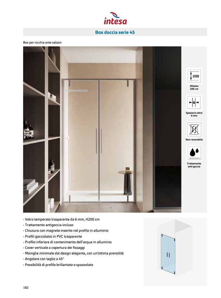 - Vetro temperato trasparente da 6 mm, H200 cm