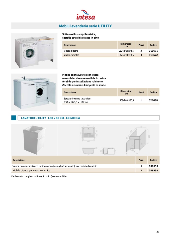 Per lavatoio completo ordinare 2 codici (vasca+mobile)