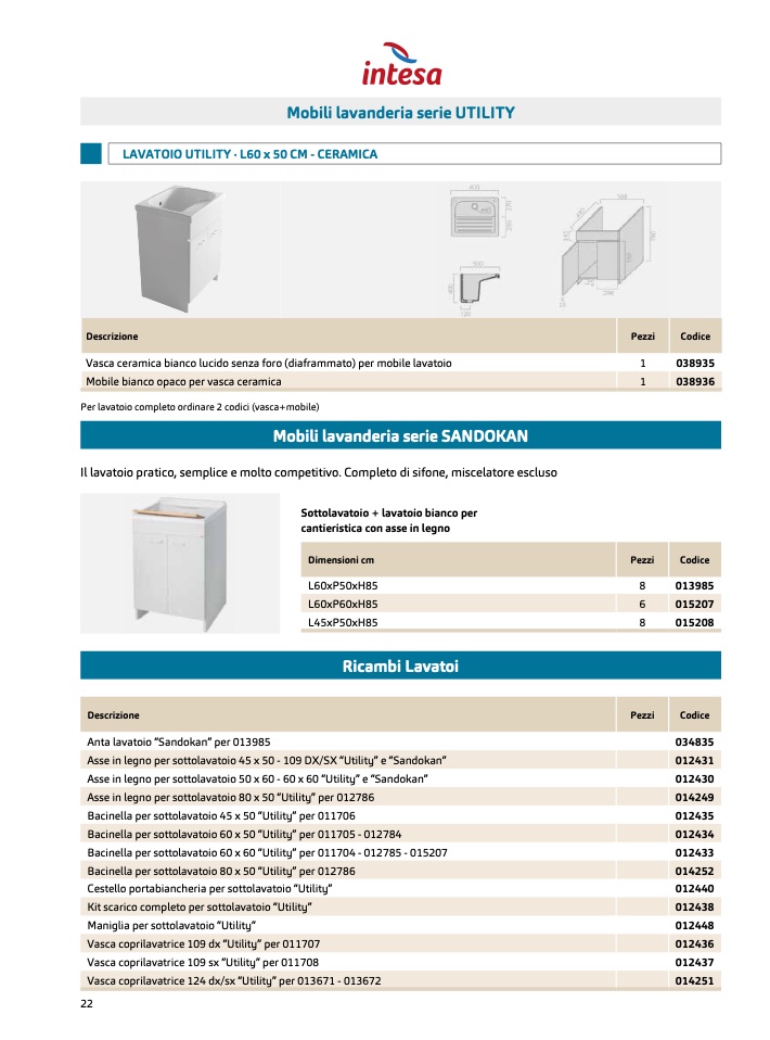 Per lavatoio completo ordinare 2 codici (vasca+mobile)