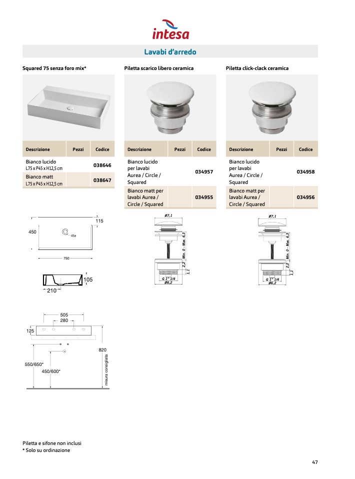 Piletta scarico libero ceramica