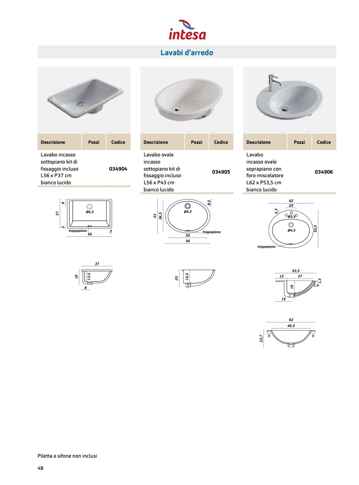Piletta e sifone non inclusi