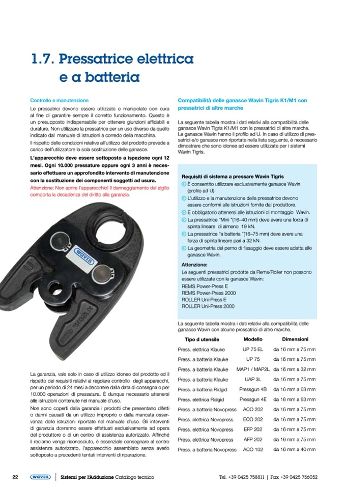 La pressatrice “a batteria ”(16–75 mm) deve avere una