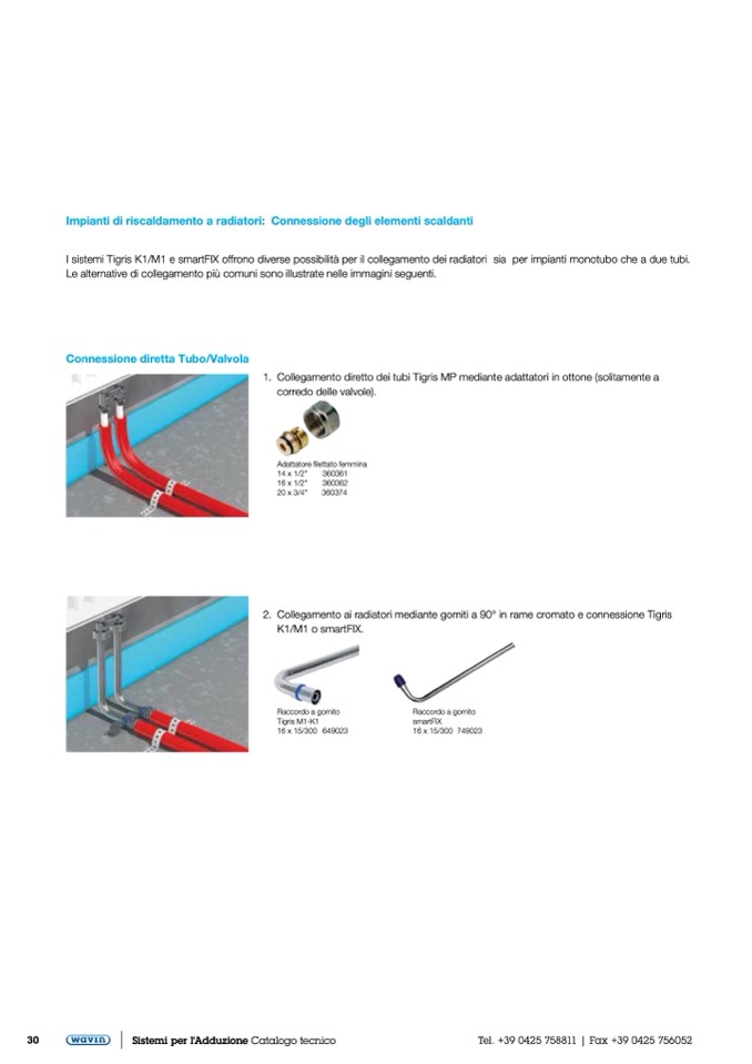 1. Collegamento diretto dei tubi Tigris MP mediante adattatori in ottone (solitamente a