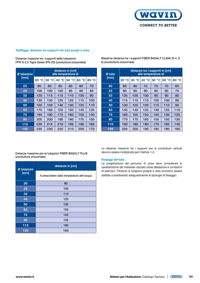 Distanze massime per le tubazioni FIBER BASALT PLUS