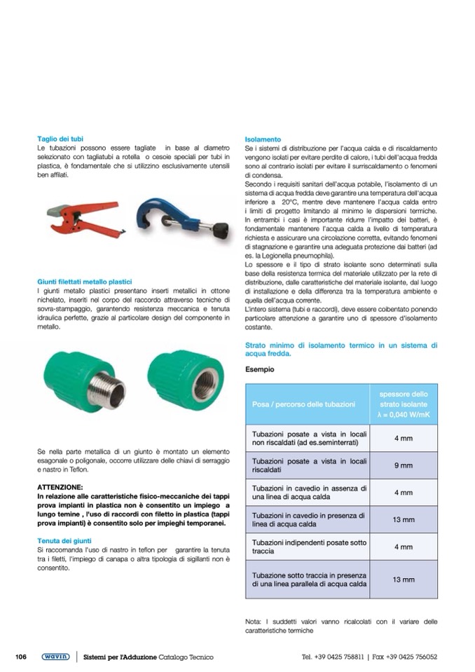 L’intero sistema (tubi e raccordi), deve essere coibentato ponendo