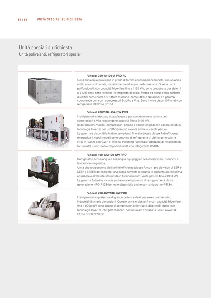 comprende unità con compressori Scroll o a Vite. Sono inoltre disponibili unit