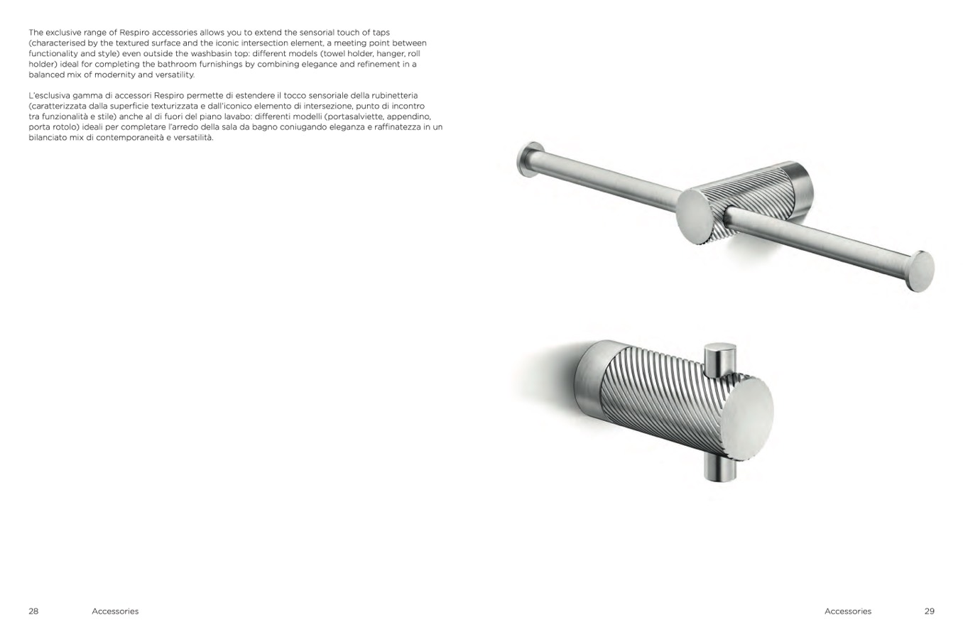 L’esclusiva gamma di accessori Respiro permette di estendere il tocco sensoriale della rubinetteria