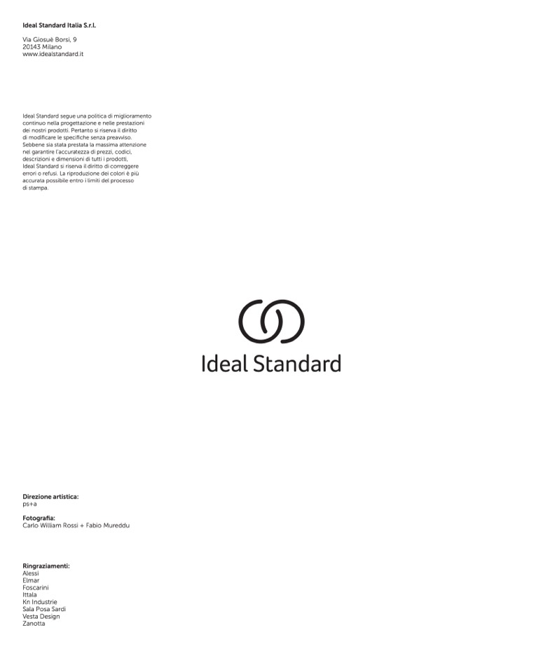 Ideal Standard si riserva il diritto di correggere