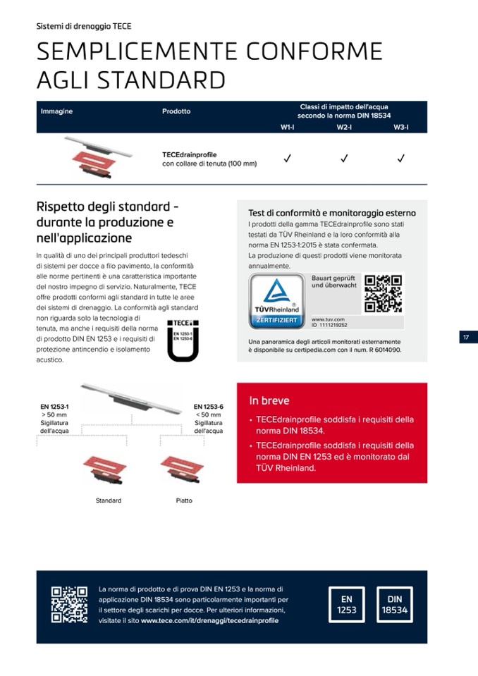 La norma di prodotto e di prova DIN EN 1253 e la norma di