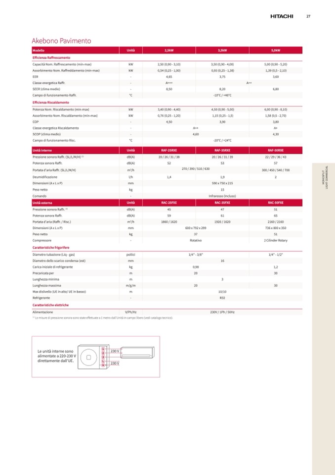 Le misure di pressione sonora sono state effettuate a 1 metro dall'Unità in campo libero (vedi catalogo tecnico).
