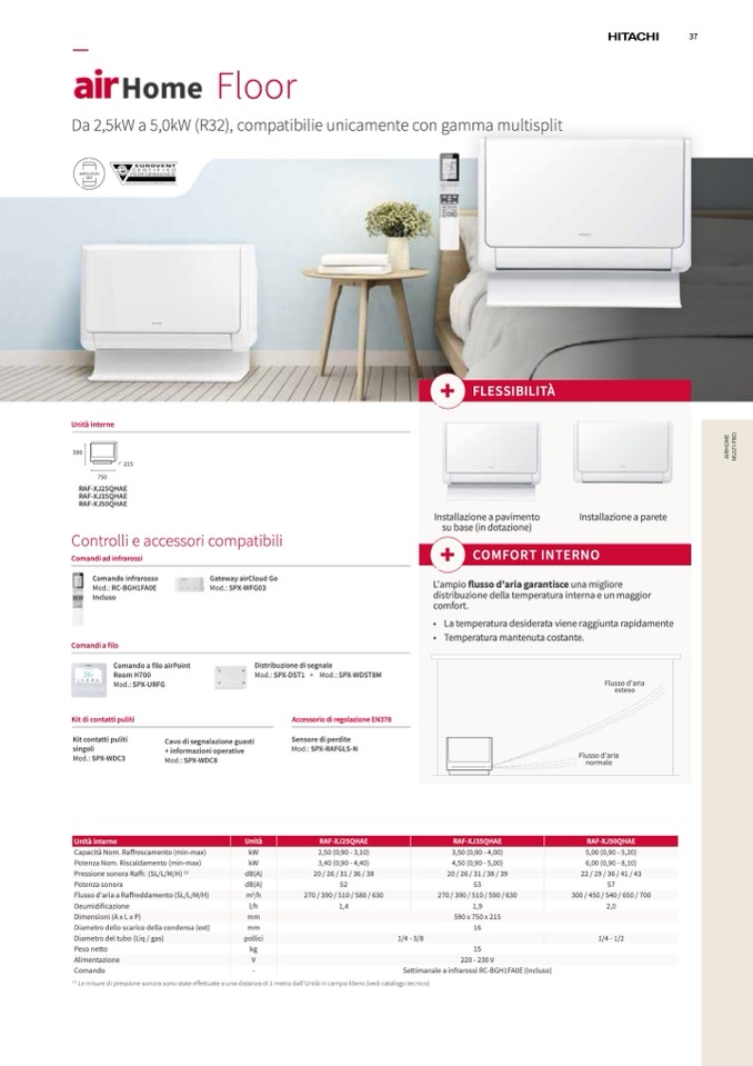 Le misure di pressione sonora sono state effettuate a una distanza di 1 metro dall'Unità in campo libero (vedi catalogo tecnico)