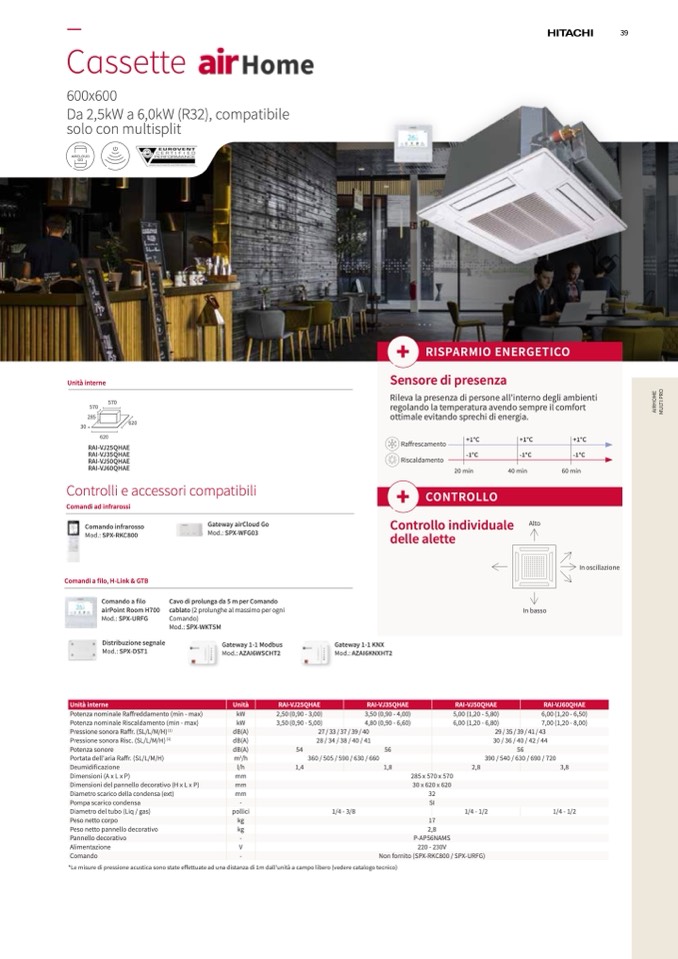 *Le misure di pressione acustica sono state effettuate ad una distanza di 1m dall'unità a campo libero (vedere catalogo tecnico)