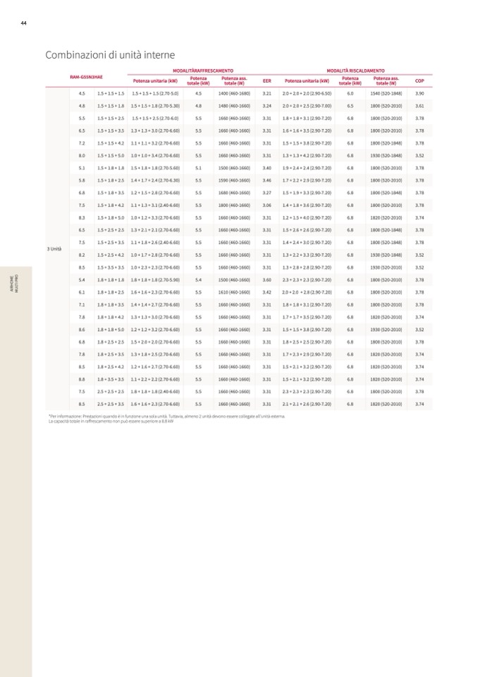 La capacità totale in raffrescamento non può essere superiore a 8.8 kW