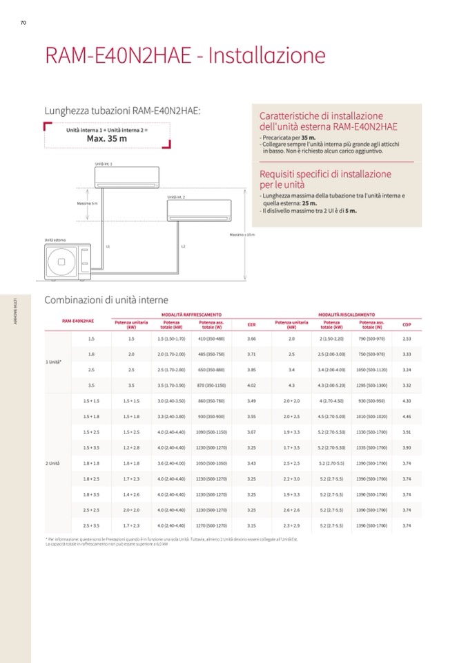 * Per informazione: queste sono le Prestazioni quando è in funzione una sola Unità. Tuttavia, almeno 2 Unità devono essere collegate all'Unità Est.