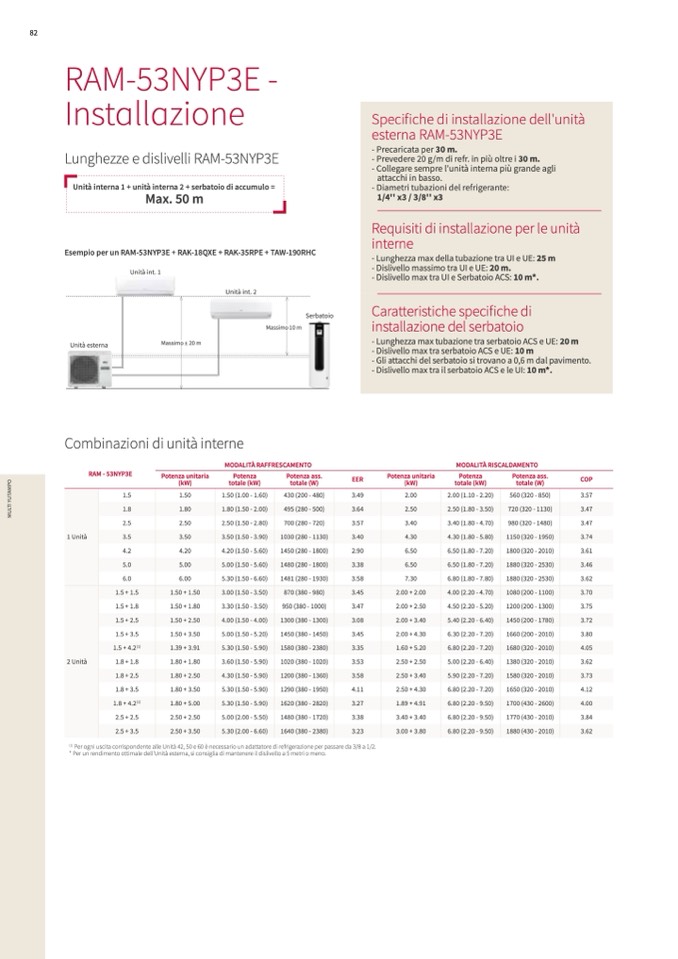 - Lunghezza max della tubazione tra UI e UE: 25 m