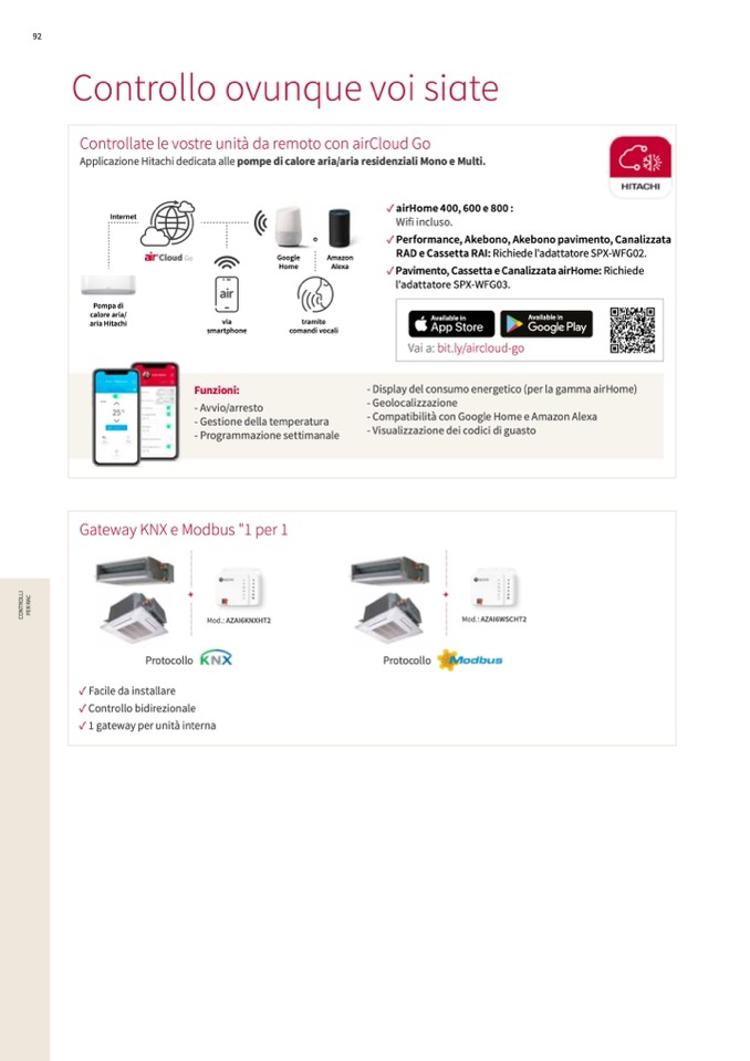 Applicazione Hitachi dedicata alle pompe di calore aria/aria residenziali Mono e Multi.