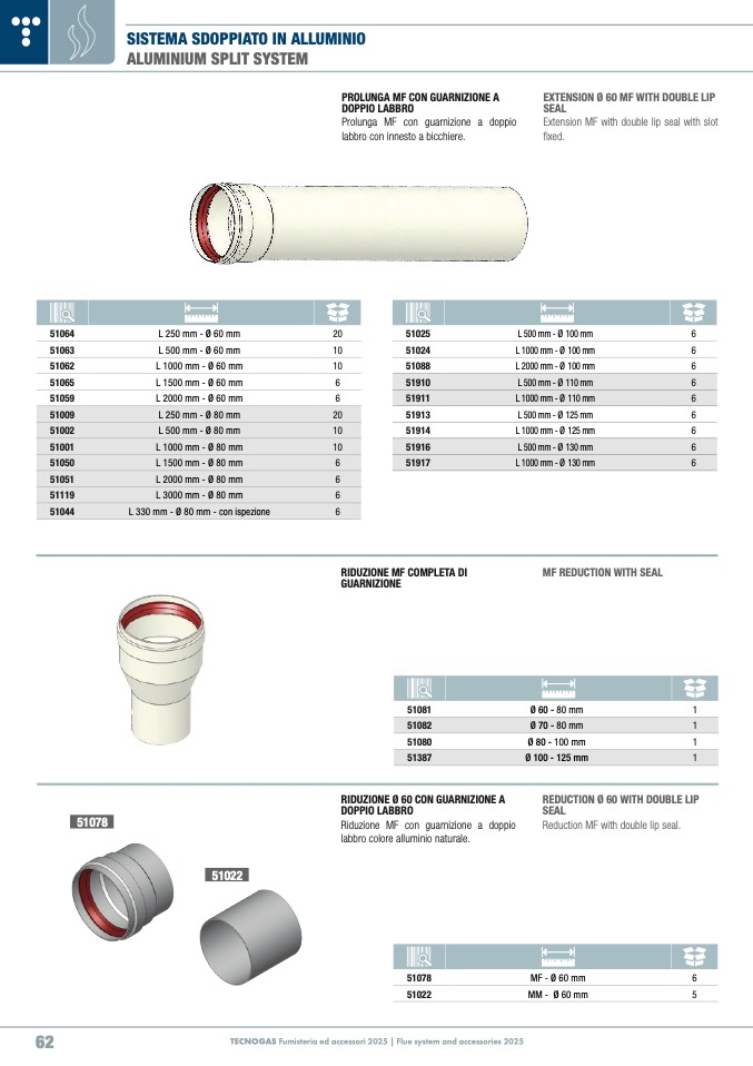 EXTENSION Ø 60 MF WITH DOUBLE LI