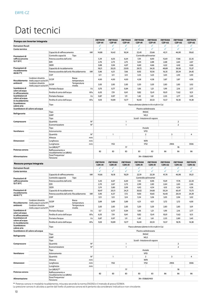 ** Potenza sonora in modalità riscaldamento, misurata secondo la norma EN12102 e il metodo di prova ISO9614.