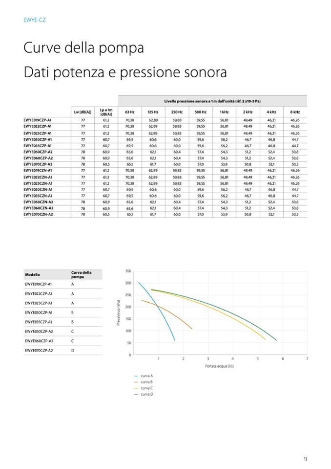 Livello pressione sonora a 1 m dall'unità (rif. 2 x10-5 Pa)