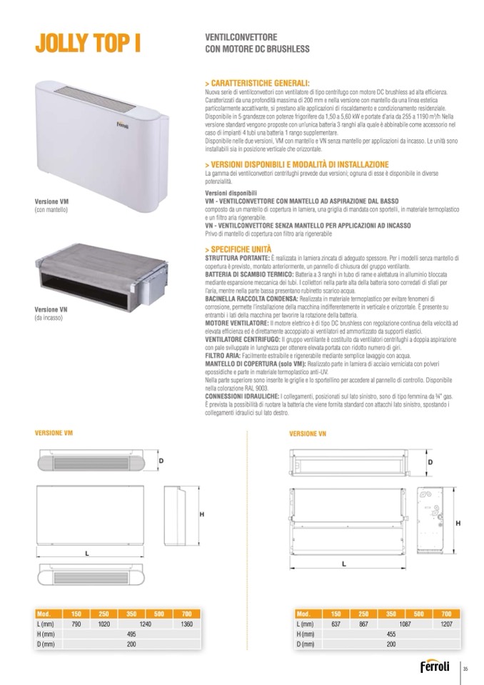 Nuova serie di ventilconvettori con ventilatore di tipo centrifugo con motore DC brushless ad alta efficienza.