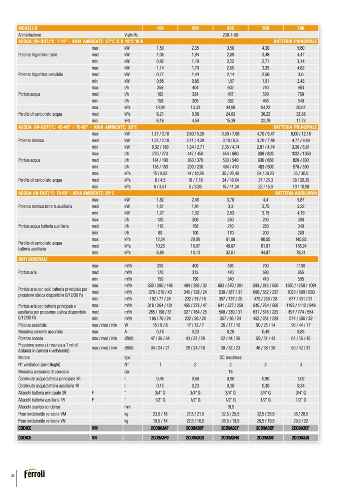 ACQUA (IN-OUT)°C: 7-12° - ARIA AMBIENTE: 27°C D.B 19°C W.B.- (E) Dati dichiarati secondo il programma di Certi