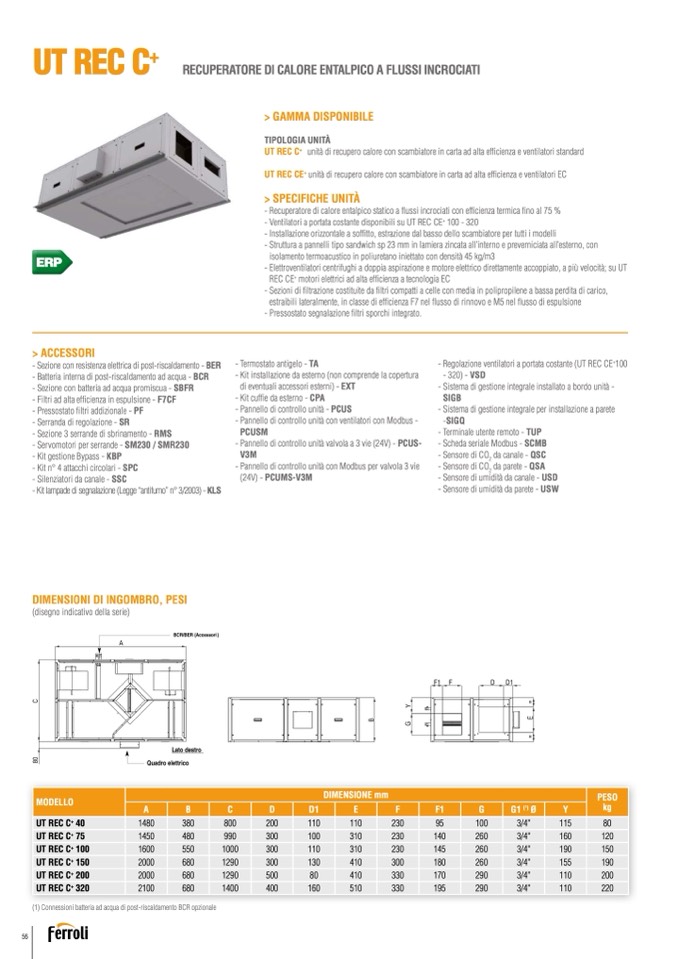 - Installazione orizzontale a soffitto, estrazione dal basso dello scambiatore per tutti i modelli