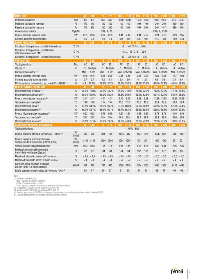 (4) Secondo regolamento UE 1253/2014: alla pressione nominale; condizioni di temperatura e umidit