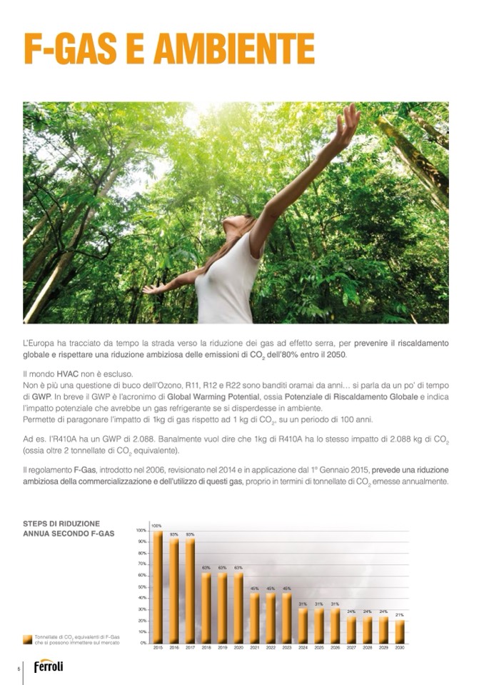 Il regolamento F-Gas, introdotto nel 2006, revisionato nel 2014 e in applicazione dal 1° Gennaio 2015, prevede una riduzione