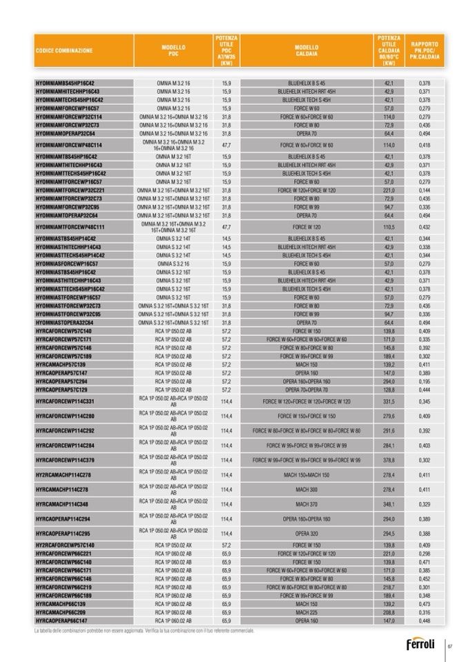 La tabella delle combinazioni potrebbe non essere aggiornata. Verifica la tua combinazione con il tuo referente commerciale.