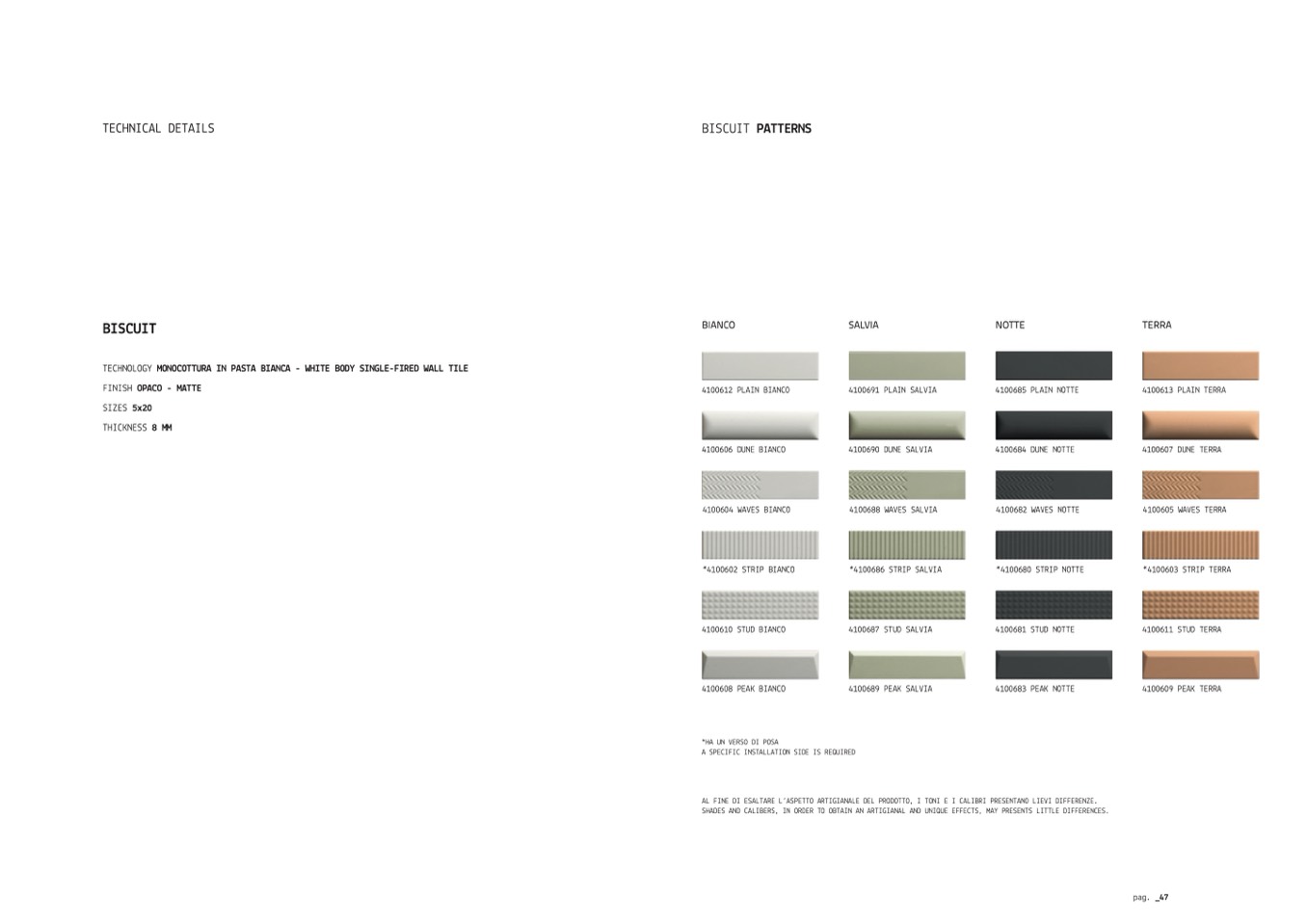SHADES AND CALIBERS, IN ORDER TO OBTAIN AN ARTIGIANAL AND UNIQUE EFFECTS, MAY PRESENTS LITTLE DIFFERENCES.