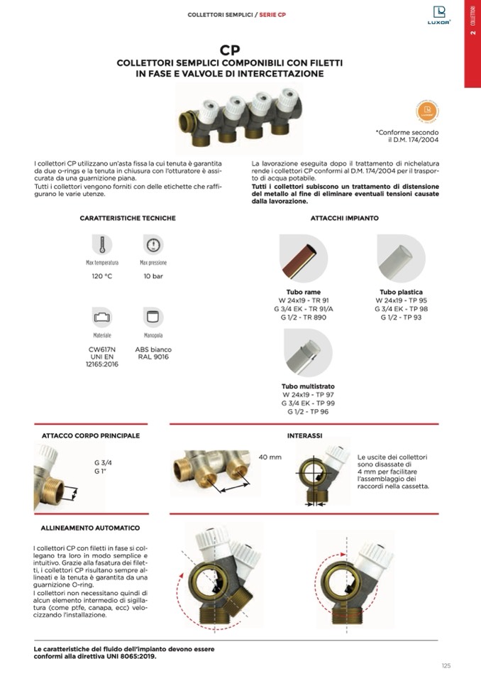 rende i collettori CP conformi al D.M. 174/2004 per il traspor-