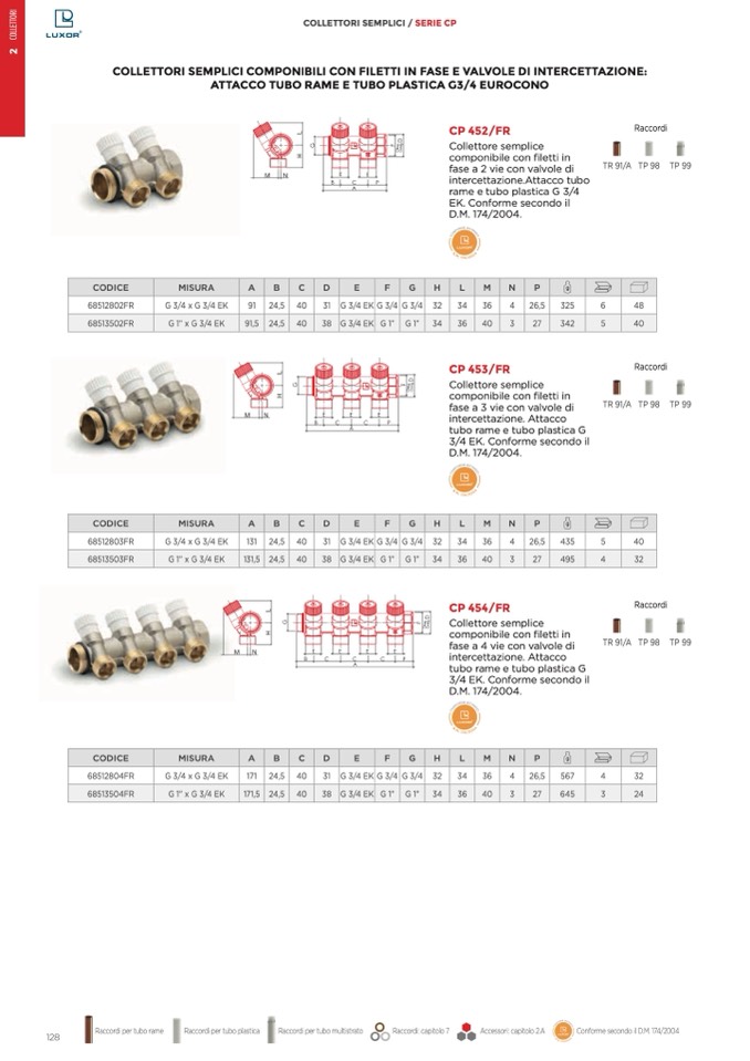 COLLETTORI SEMPLICI COMPONIBILI CON FILETTI IN FASE E VALVOLE DI INTERCETTAZIONE:
