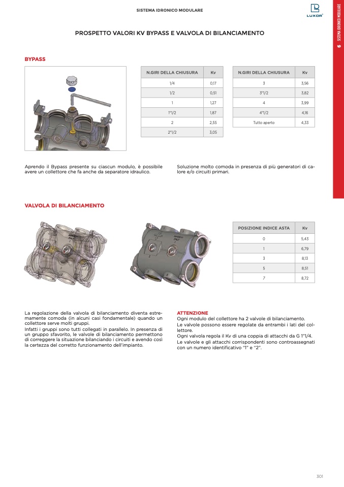 PROSPETTO VALORI KV BYPASS E VALVOLA DI BILANCIAMENTO