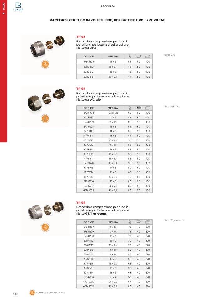 RACCORDI PER TUBO IN POLIETILENE, POLIBUTENE E POLIPROPILENE