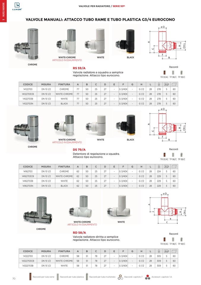 VALVOLE PER RADIATORE / SERIE 50ͭh