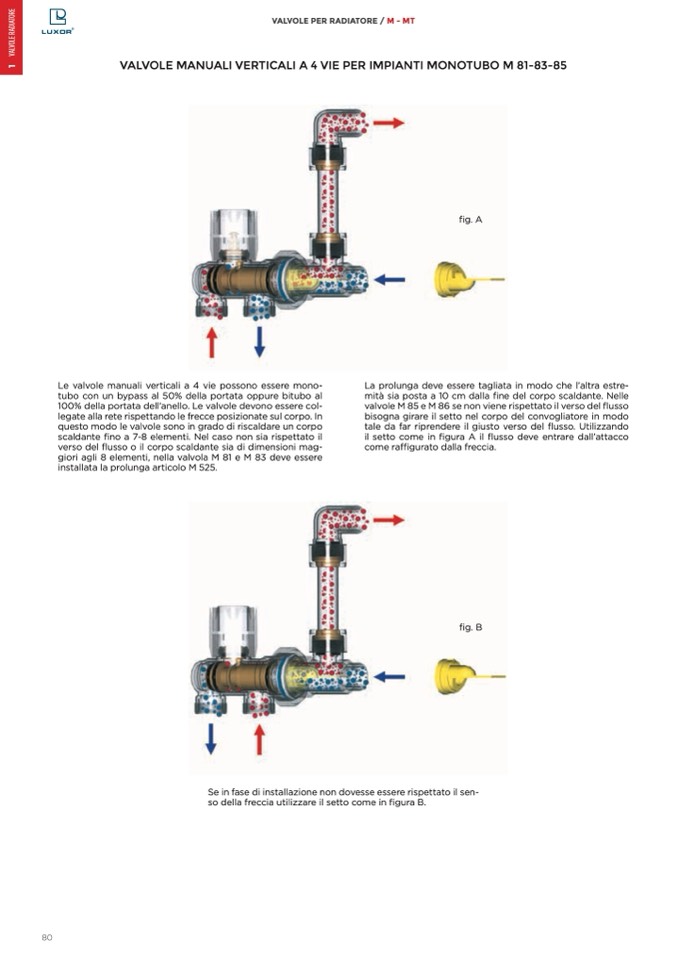 VALVOLE MANUALI VERTICALI A 4 VIE PER IMPIANTI MONOTUBO M 81-83-85